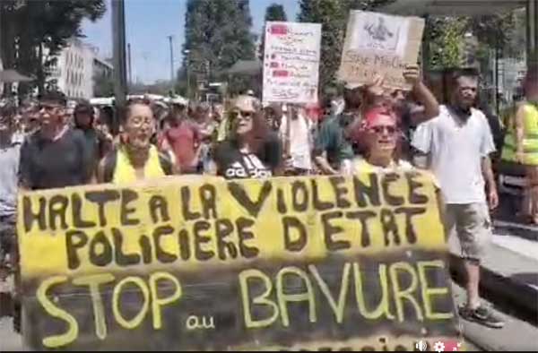 Parmi les banderoles de ce samedi : « Amnestie pour les gilets jaunes condamnés » ou « Stop au bavure ».